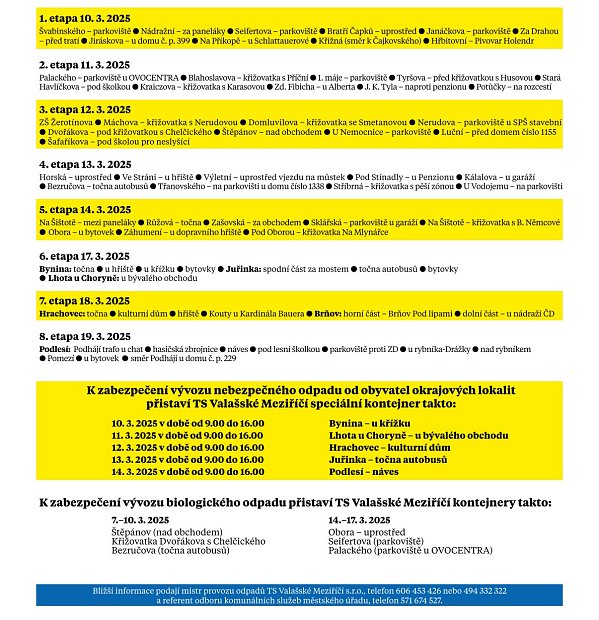 Před rajonovou očistou města proběhne vývoz velkoobjemového, nebezpečného a biologicky rozložitelného odpadu. Kontejnery na objemný a nebezpečný odpad budou v ulicích města a místních částí přistaveny od 10. do 19. března, na bioodpad od 7. do 10. března a od 14. do 17. března. Více ZDE.
